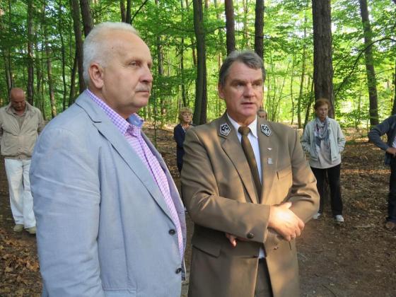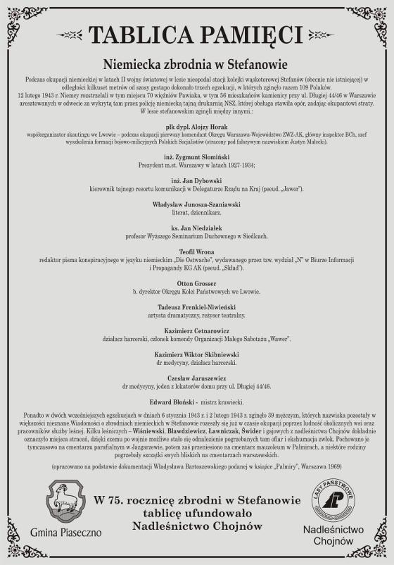 Tablicę informacyjną, zredagowaną przez Redaktora Kaczorowskiego ufundowało i ustawiło na miejscu Nadleśnictwo Chojnów.