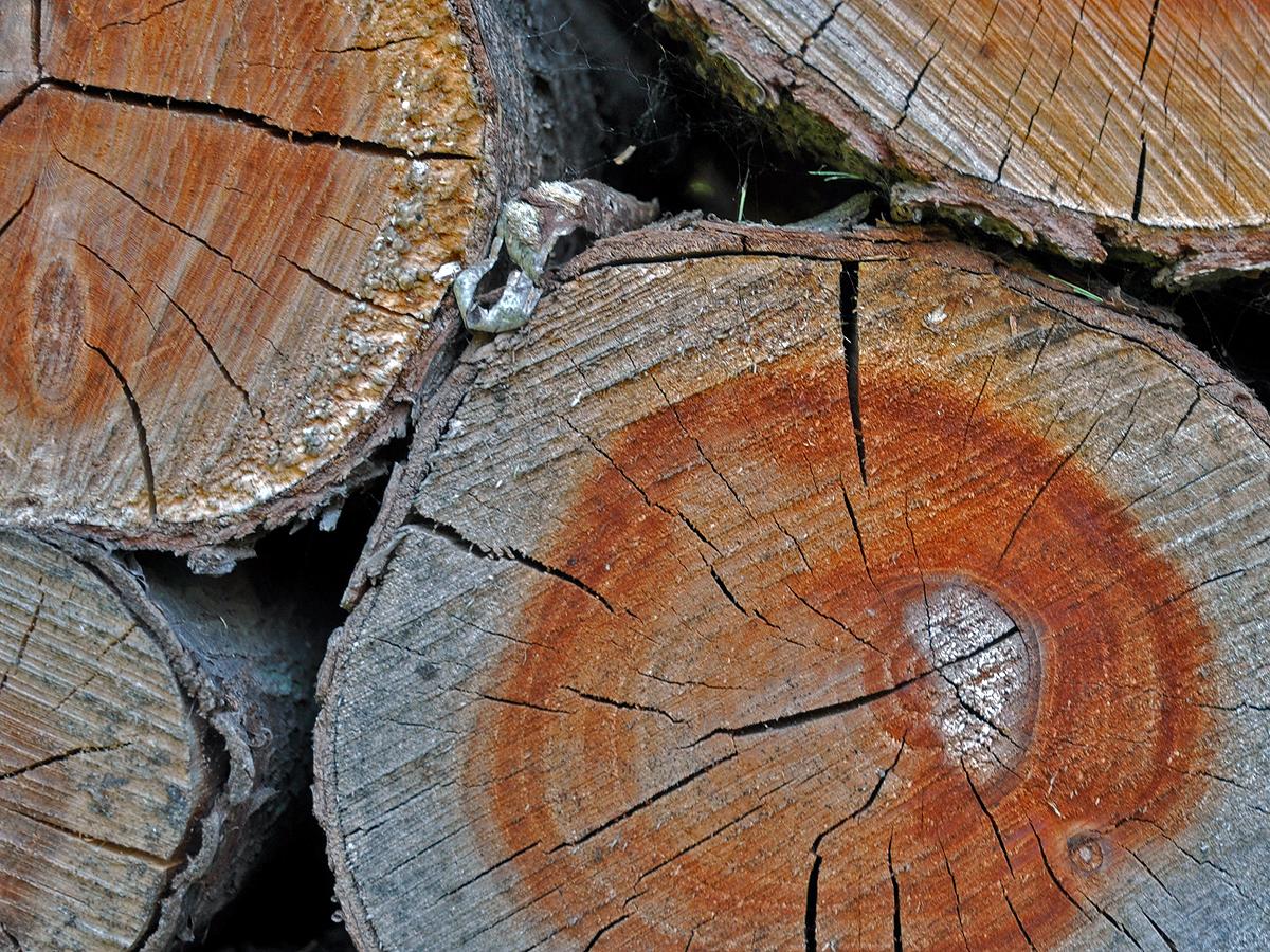 Ułożone w stos drewno zawiera puste przestrzenie (w tym korę):