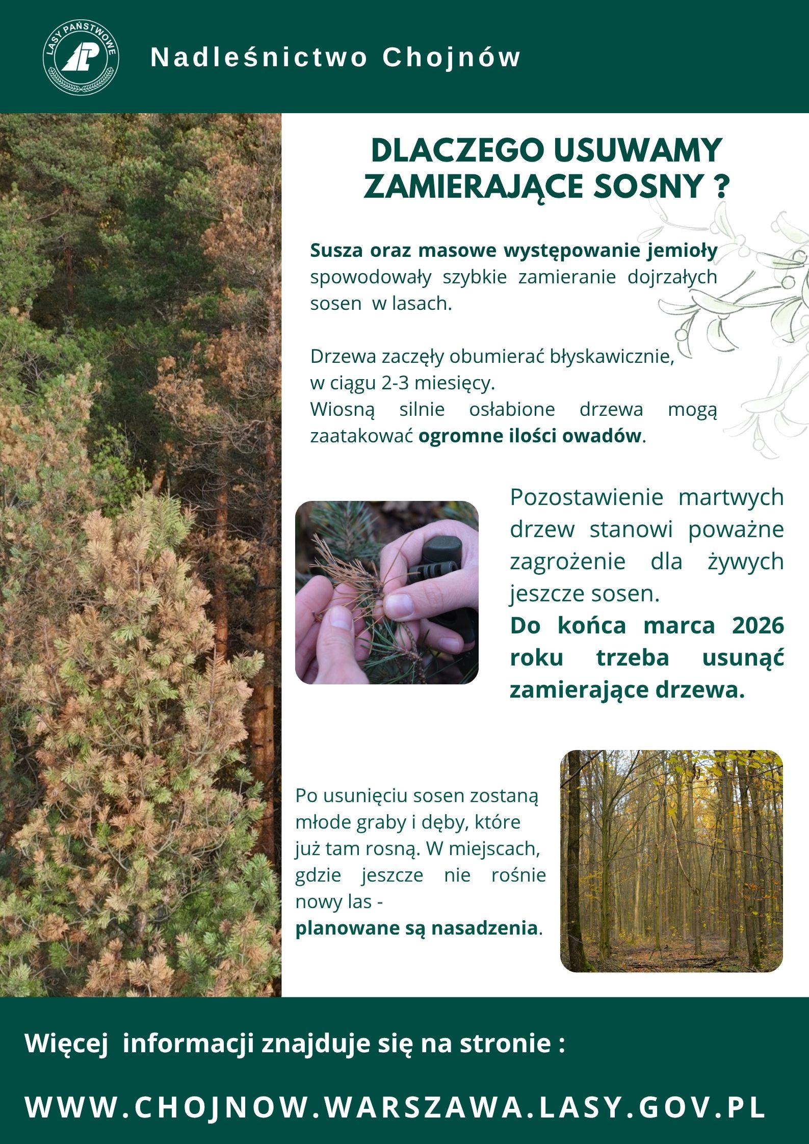Informacje dotyczące zamierania sosny w Nadleśnictwie Chojnów znajdują się na stronie: